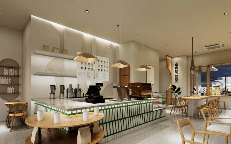 Màu sáng để không gian rộng hơn: Phù hợp cafe take-away hoặc pop-up, tăng cảm giác thoáng đãng.