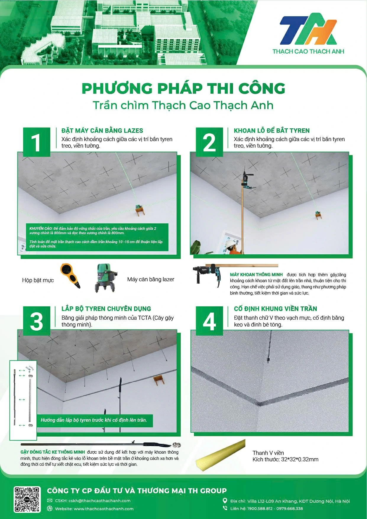 Dưới đây là 8 bước thi công chuẩn kỹ thuật được khuyến nghị bởi Công ty CP Đầu tư và Thương mại TH Group – Thạch Cao Thạch Anh.