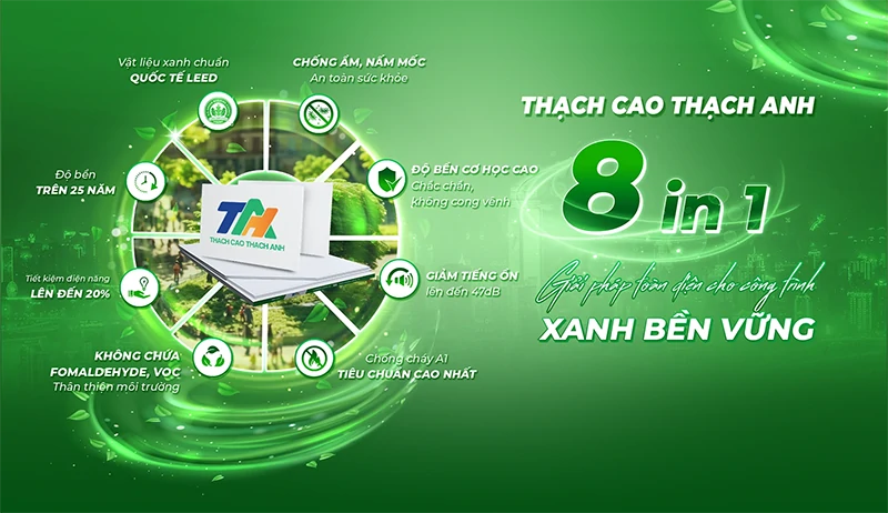 Thân thiện môi trường: Cam kết sản xuất vật liệu không chứa Formaldehyde, giảm phát thải CO2, góp phần vào mục tiêu phát thải ròng bằng 0 của Việt Nam vào năm 2050.