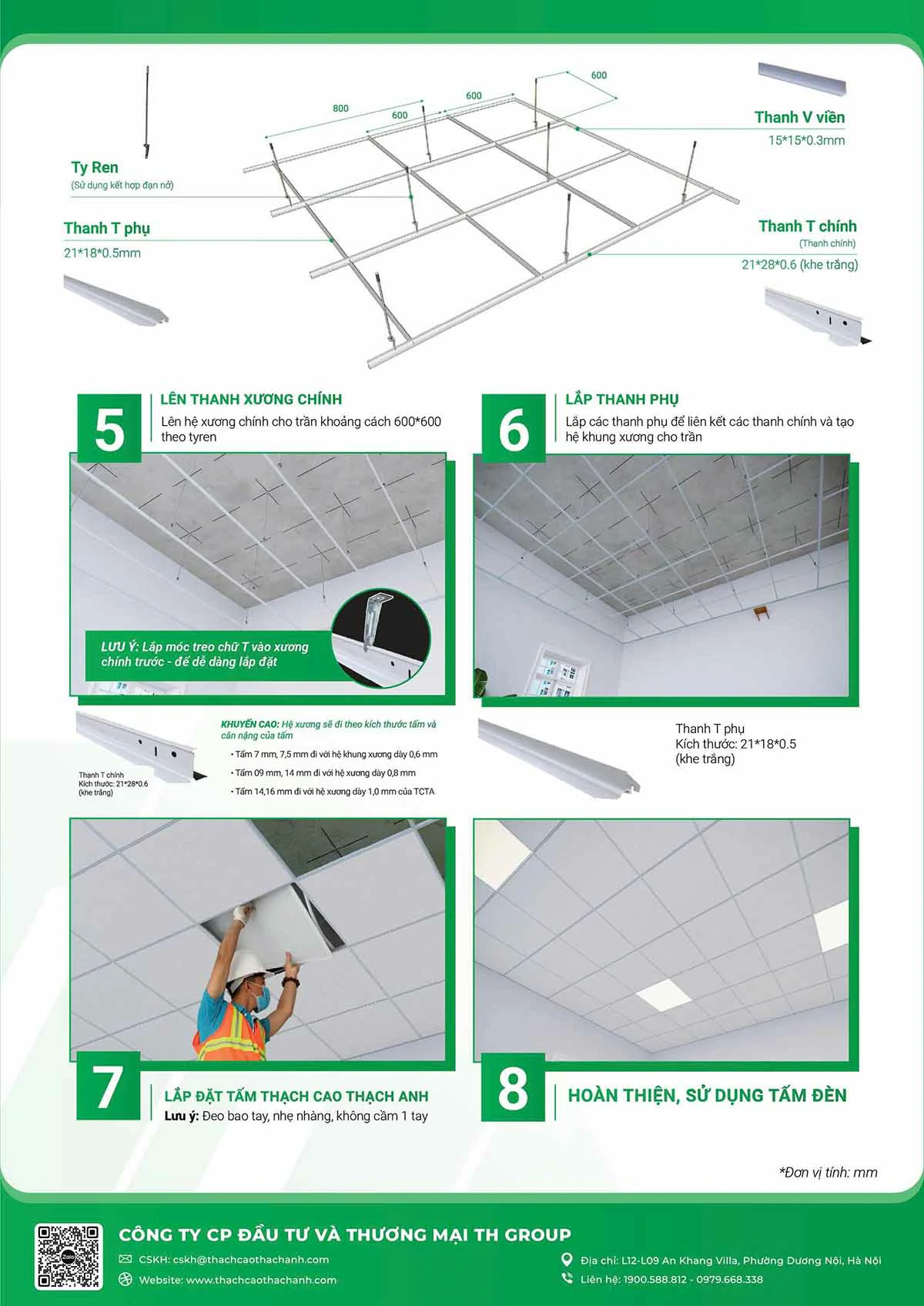 Không treo đèn nặng trực tiếp vào tấm trần: Sử dụng ty ren chịu lực, tránh võng sau 5 năm.