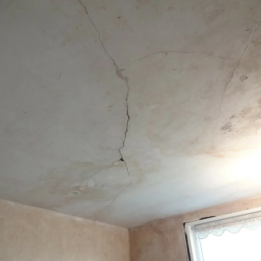 Trần bị ố vàng do rò nước: Hơi ẩm từ mái hoặc ống nước ngấm, dẫn đến mốc meo nếu không xử lý.