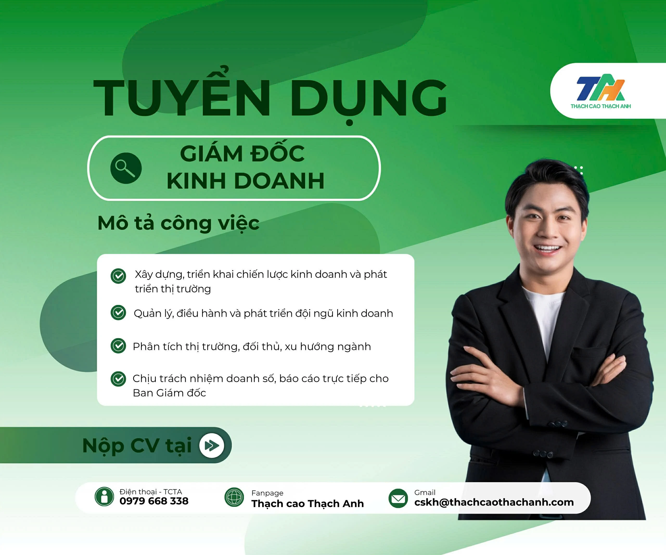 📢 TUYỂN DỤNG GIÁM ĐỐC KINH DOANH – NGÀNH VẬT LIỆU XÂY DỰNG
