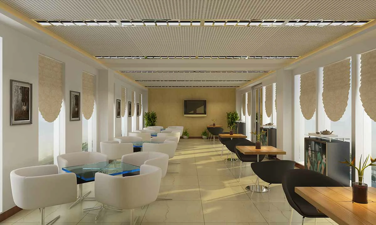 Che hệ thống điện, ống kỹ thuật, HVAC, giúp không gian gọn gàng và chuyên nghiệp hơn. Kết hợp đèn LED âm trần tiết kiệm điện, tăng tính hiện đại với giật cấp nhẹ 1-2 tầng cho phòng họp. Dùng khung xương thép mạ kẽm nhẹ – tương thích hoàn hảo với khung nhà tiền chế, thi công chỉ 3 ngày.